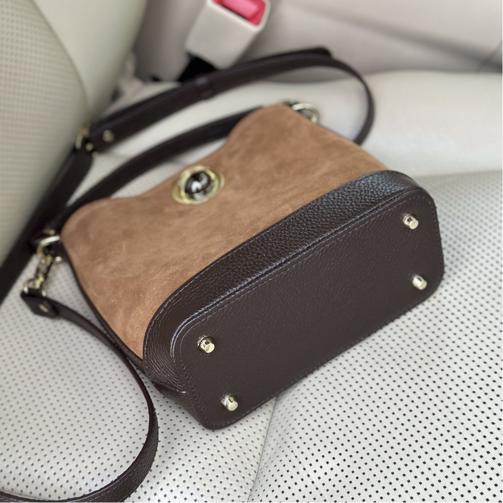 Жіноча шкіряна сумка кросс-боді з натуральної шкіри, фурнітурою з гальванічним покриттям і підкладкою мікрофібра. Внутрішній простір сумки облаштовано таким чином: одне просторе відділення, одна накладна кишеня і одна кишеня на блискавці. Сумка закривається на замок. Довжина ремінця регулюється. В комплект також входить мішок для зберігання.
