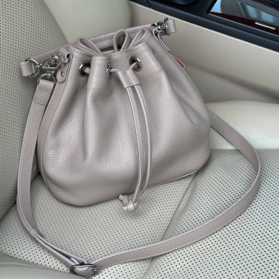 Жіноча шкіряна сумка-мішок Хобо з натуральної шкіри, фурнітурою з гальванічним покриттям і підкладкою мікрофібра. Внутрішній простір сумки облаштовано таким чином: одне просторе відділення, дві накладні кишені і одна кишеня на блискавці. Сумка стягується шкіряним шнурком. Дно сумки захищено металевими ніжками. Є довга ручка, яка дозволяє носити сумку на плечі. В комплект також входить мішок для зберігання.