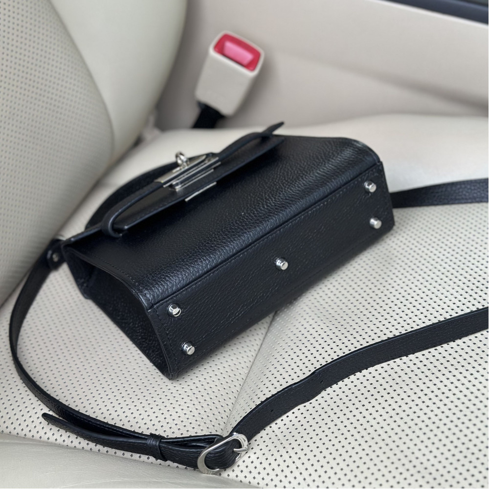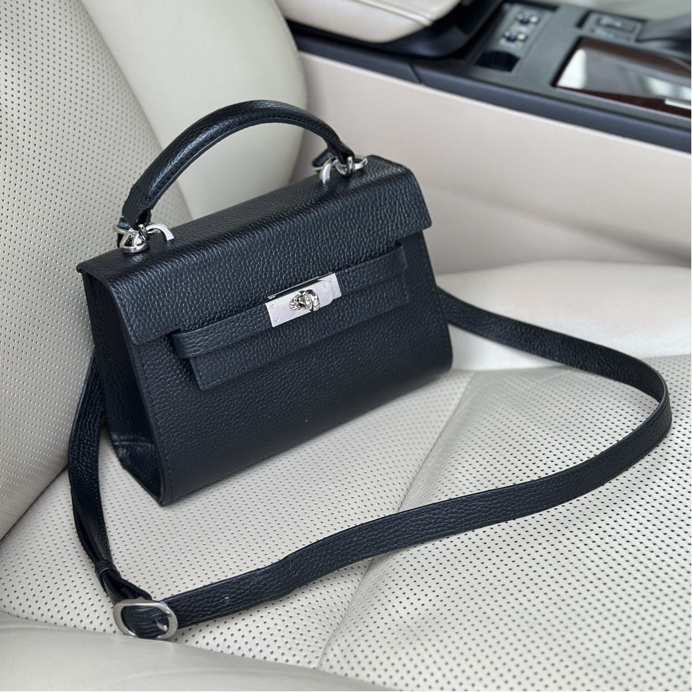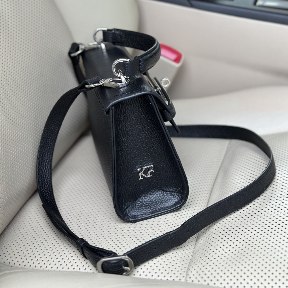 Жіноча шкіряна сумка з натуральної шкіри, фурнітурою з гальванічним покриттям і підкладкою мікрофібра. Внутрішній простір сумки облаштовано таким чином: одне просторе відділення, дві накладні кишені і одна кишеня на блискавці. Закривається сумка на застібку. Дно сумки захищено металевими ніжками. Є довга ручка, яка дозволяє носити сумку на плечі. В комплект також входить мішок для зберігання.