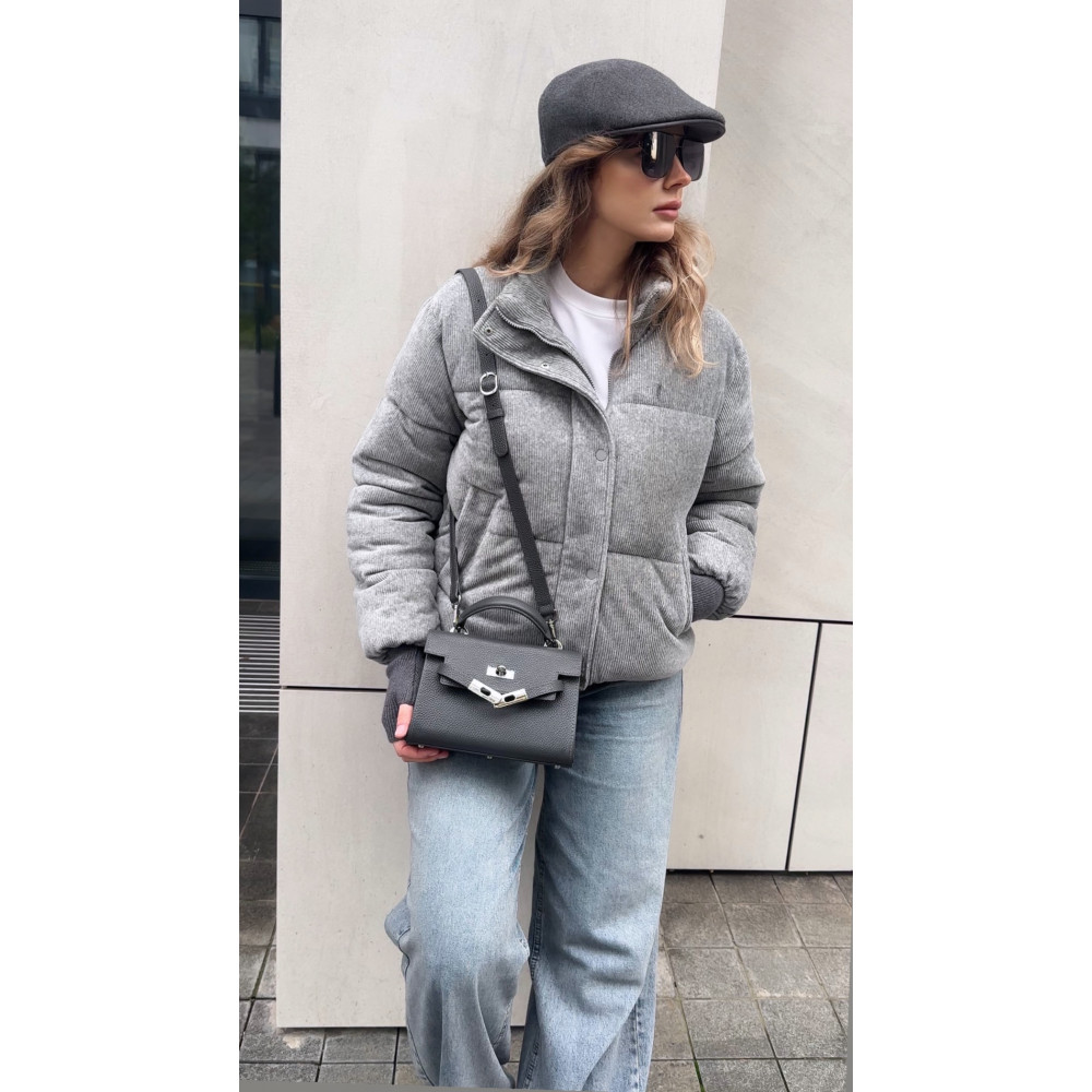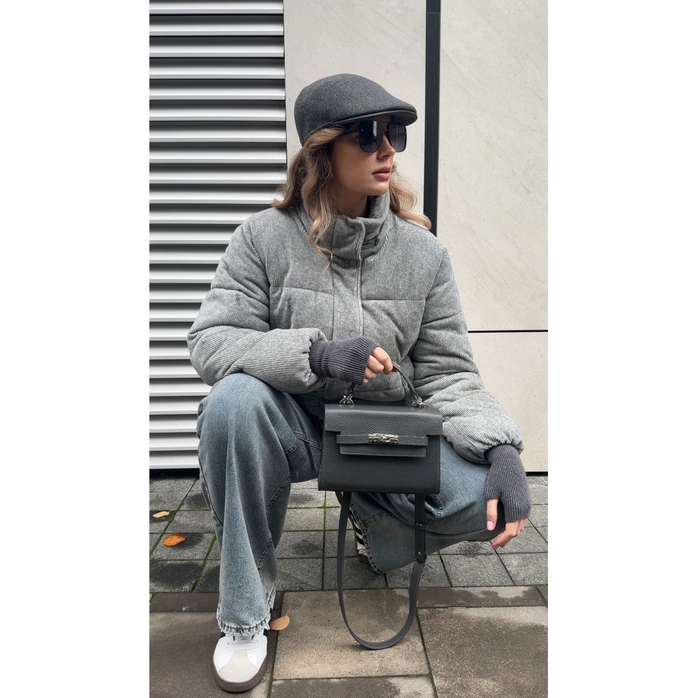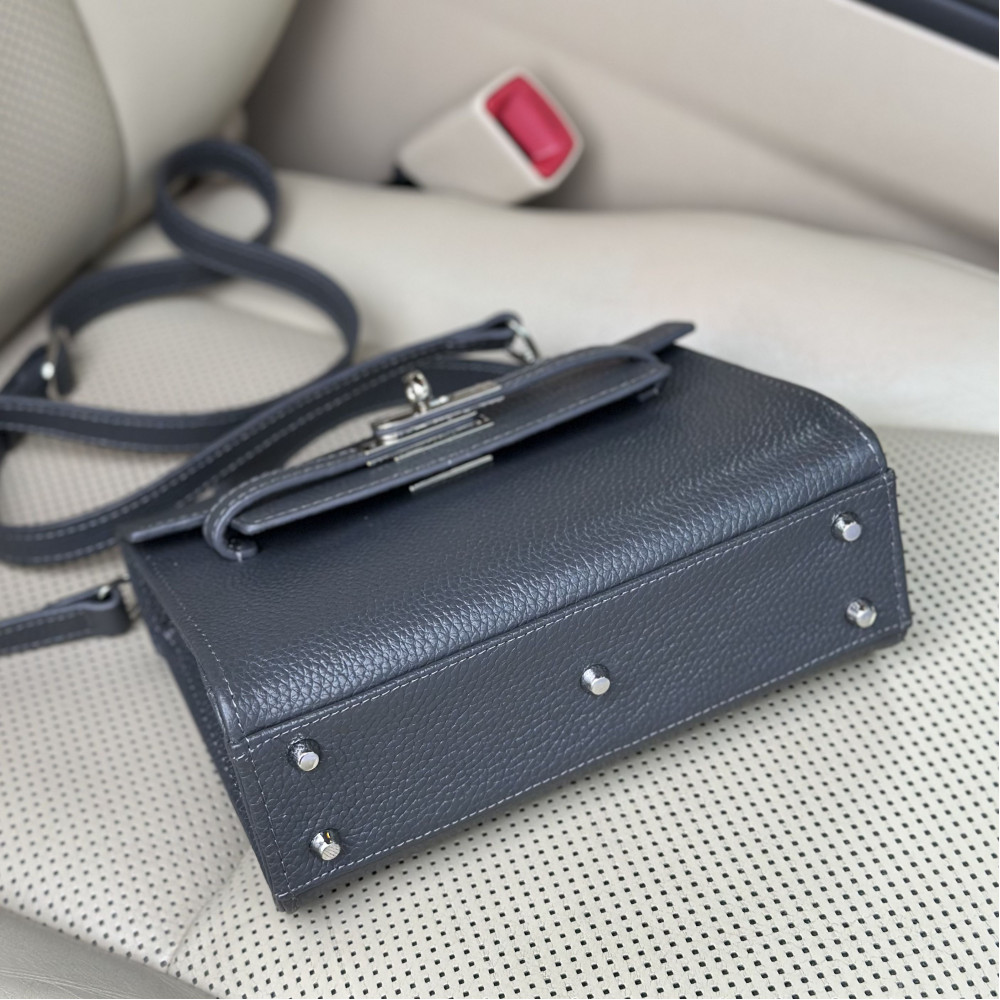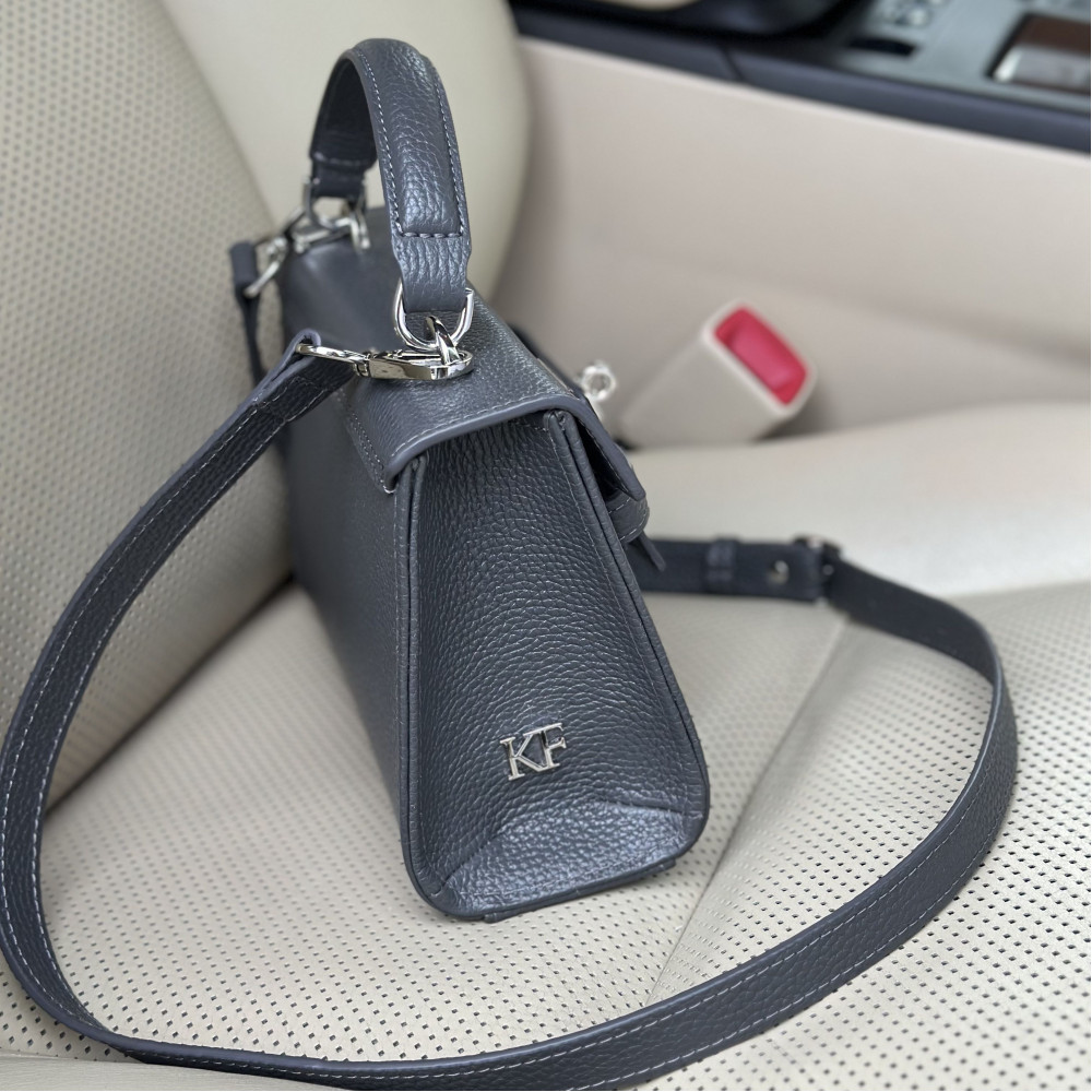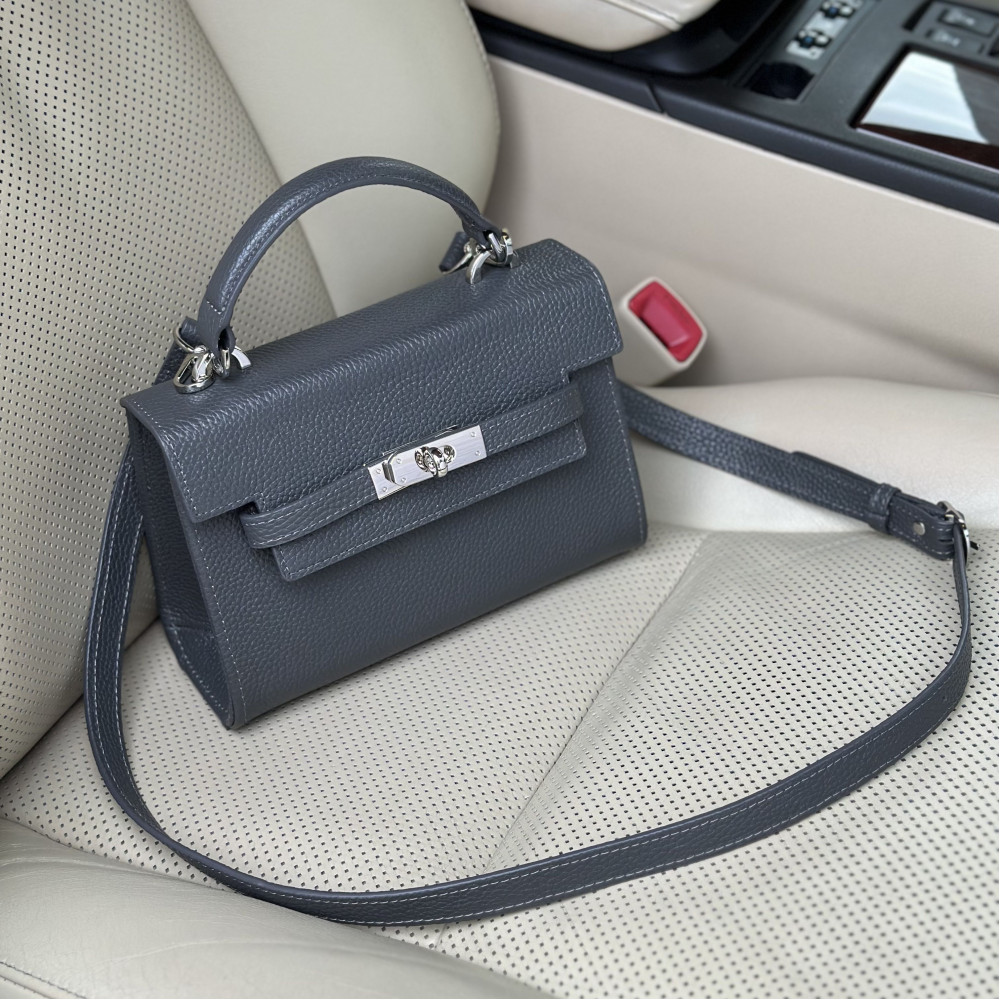 Жіноча шкіряна сумка з натуральної шкіри, фурнітурою з гальванічним покриттям і підкладкою мікрофібра. Внутрішній простір сумки облаштовано таким чином: одне просторе відділення, дві накладні кишені і одна кишеня на блискавці. Закривається сумка на застібку. Дно сумки захищено металевими ніжками. Є довга ручка, яка дозволяє носити сумку на плечі. В комплект також входить мішок для зберігання.
