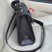 Жіноча шкіряна сумка з натуральної шкіри, фурнітурою з гальванічним покриттям і підкладкою мікрофібра. Внутрішній простір сумки облаштовано таким чином: одне просторе відділення, дві накладні кишені і одна кишеня на блискавці. Закривається сумка на застібку. Дно сумки захищено металевими ніжками. Є довга ручка, яка дозволяє носити сумку на плечі. В комплект також входить мішок для зберігання.